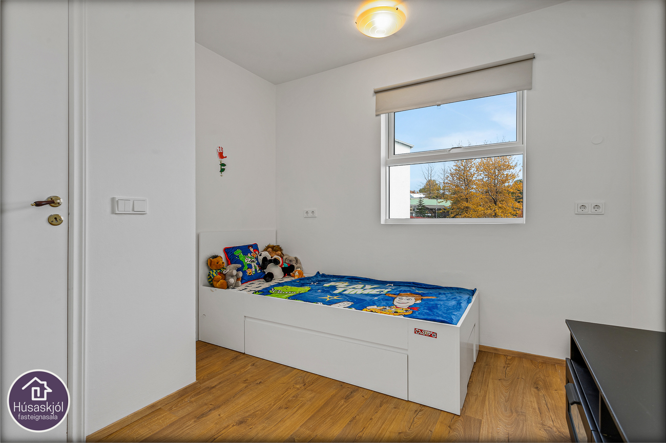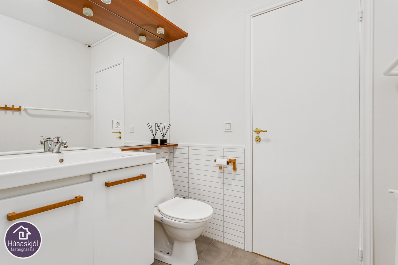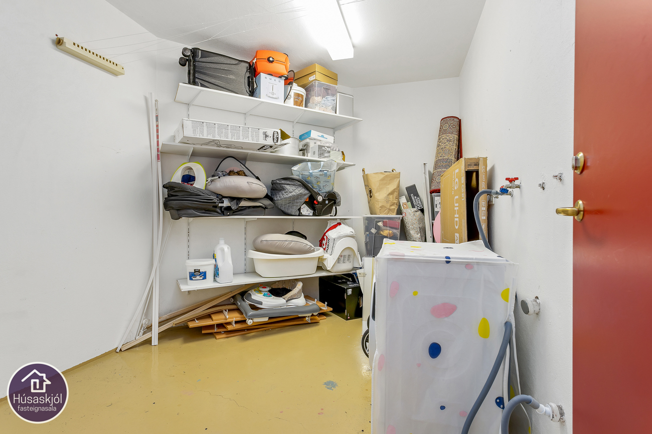 Sérgeymsla: í kjallara fylgir íbúðinni, með aðstöðu fyrir þvottavél og þurrkara. Í kjallara er einnig sameiginleg geymsla.