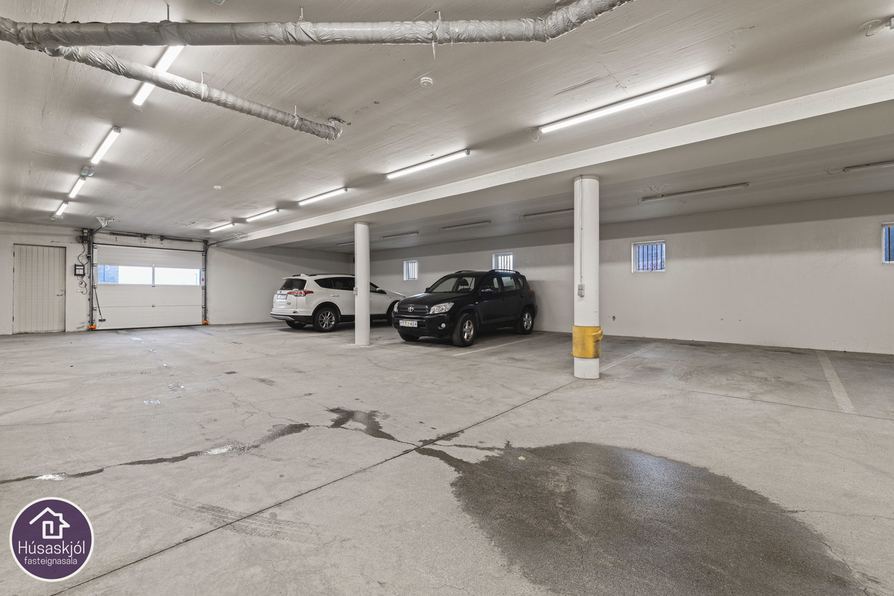 Merkt sérbílastæði fylgir íbúðinni, þvottaaðstaða til að þvo bíla í bílageymslunni.