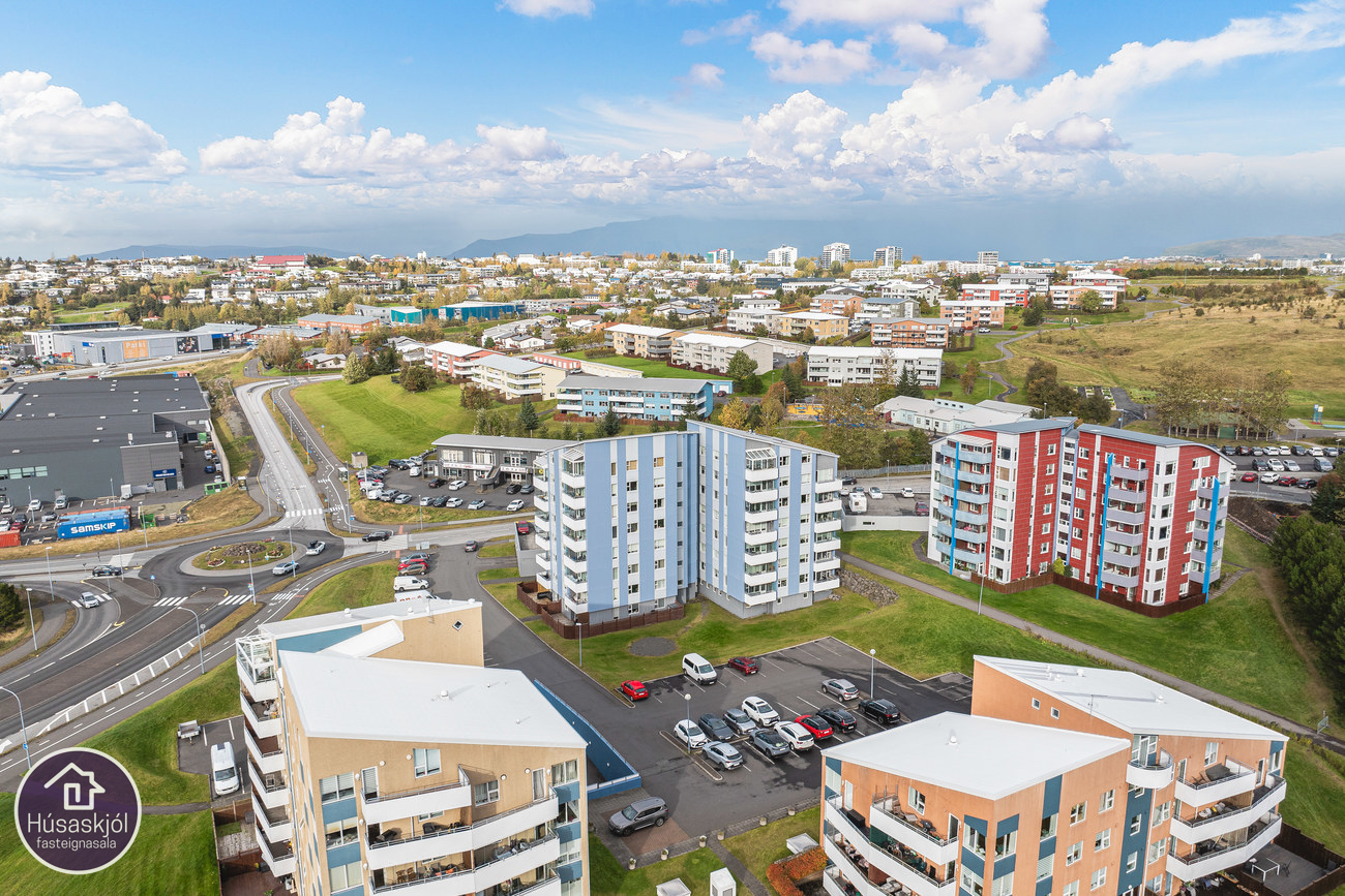 Sameign: Í sameign er sérgeymsla sem og hjóla- og vagnageymsla.