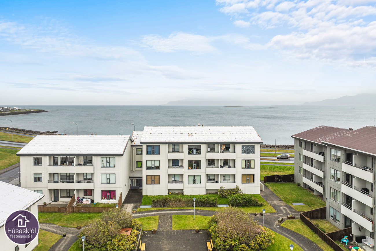 Húsaskjól og Jóhanna Gustavsdóttir löggiltur fasteignasali kynna í einkasölu: fallega og bjarta 3ja herbergja endaíbúð á annarri hæð með sér inngangi af svölum, sjávarútsýni, bílastæði í lokuðum bílakjallara með tengi fyrir rafmagnsbíl og suðursvölum. Búið er að endunýja eldhús, baðherbergi og fataskápa. Mjög góð staðsetning.