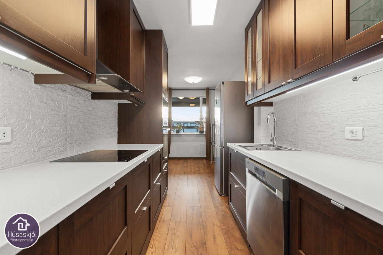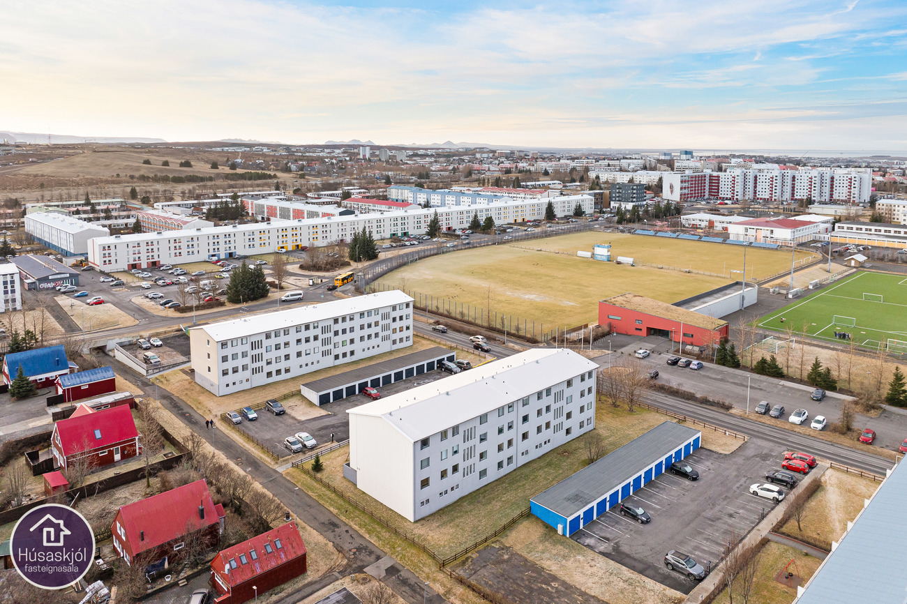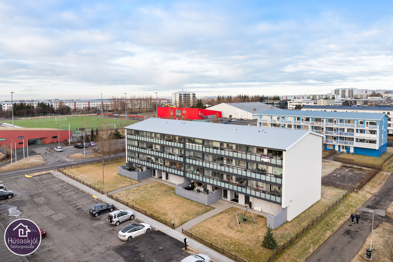 Na sprzedaż 4-pokojowe mieszkanie o powierzchni 106,6 m², położone na czwartym piętrze zadbanego budynku wielorodzinnego przy Austurberg 10 w Reykjavíku.