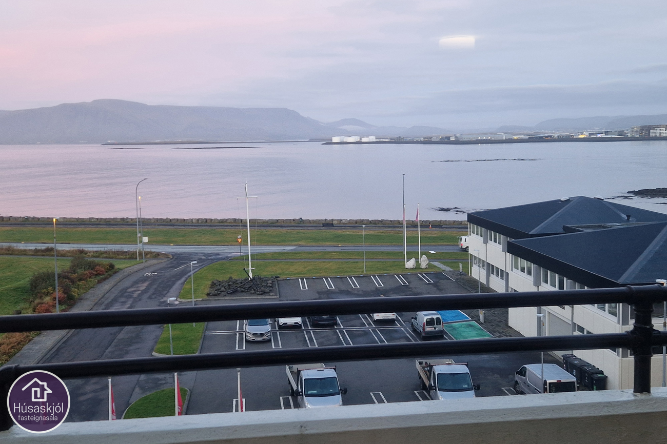 Stofan er með glugga til norðurs og útgengi á stórar svalir. Mjög fallegt útsýni.
