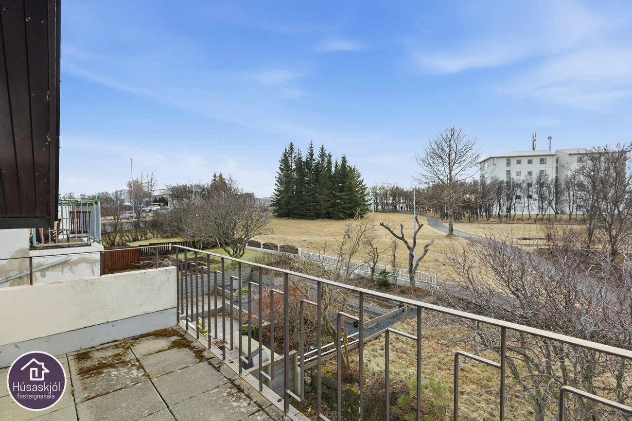 Lýsing eignar: Gengið er inn um sameiginlegan inngang og upp stiga. Komið er inn í hol með harðparketi á gólfi og þaðan er opið inn í stofu með útgengi á suðursvalir. Eldhúsið er með L-laga innréttingu, efri og neðri skápar, borðkrókur og tengi fyrir þvottavél, borðkrókur í eldhúsi, flísar á gólfi, gluggar með útsýni yfir Esjuna. Baðherbergi er flísalagt í hólf og gólf með baðkari, yfir baðherbergi er geymsluloft. 3 svefnherbergi í íbúðinni öll með harðparketi og hjónaherbergi með skápum. Eitt herbergið er skráð sem geymsla á teikningu.