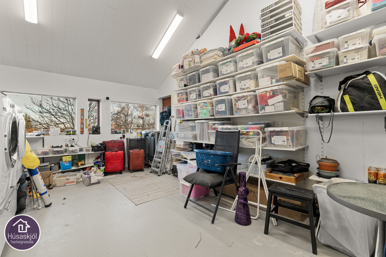 Bílskúr er rúmgóður og búið að endurnýja hann mikið. Úr skúrnum er gengið niður í óskráð rými sem er undir skúrnum og hefur verið nýtt sem geymsla.