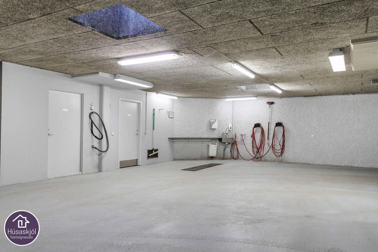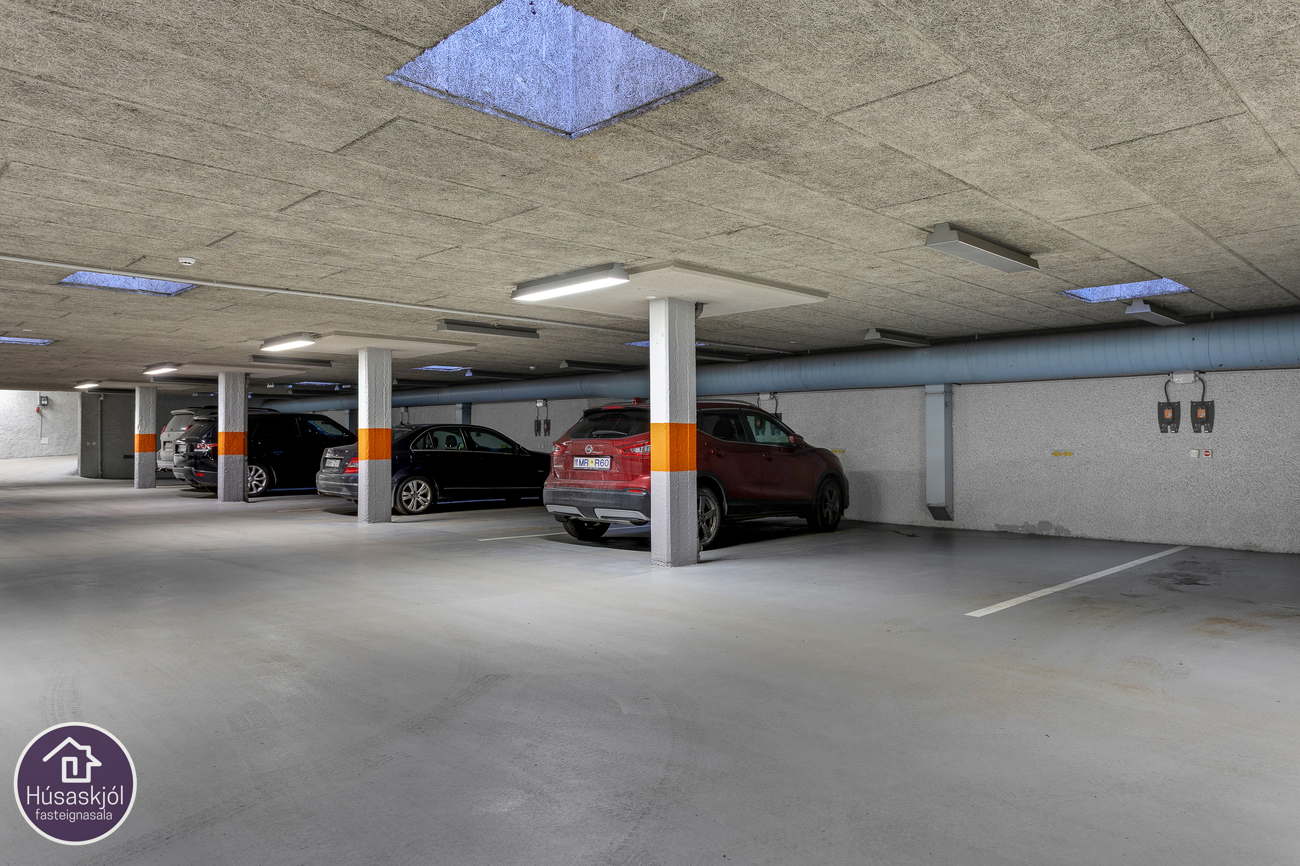 Sér bílastæði: í lokaðri, upphitaðri og loftræstri bílageymslu. Stæðið er rúmgott og því fylgir aðgengi að þvottastæði og sameiginlegri dekkjageymslu. Rafhleðslustöð er í bílageymslu.